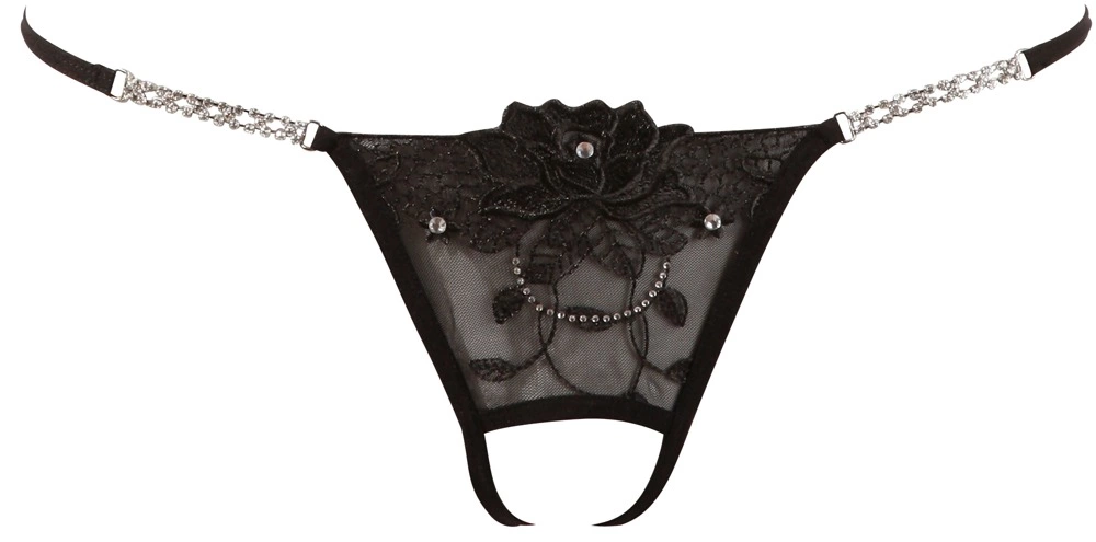 Cottelli Lingerie Stringi z kwiatowym haftem i delikatnymi dżetami – model M/L