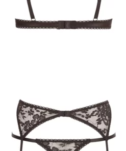 Odkryj elegancję i ponadczasowy styl z kompletem marki Cottelli Collection. Ten starannie zaprojektowany zestaw w klasycznym czarnym kolorze podkreśla sylwetkę, łącząc komfort z modnym wyglądem. Komplet składa się z trzech elementow: podwyższonego stanika z delikatnie usztywnianymi miseczkami i fiszbinami, pasa do pończoch oraz otwartych fig typu Riostring. Wszystkie części wykonano z elastycznej, miękkiej koronki o subtelnym wzorze, co zapewnia wygodę noszenia oraz wysoką jakość wykonania.