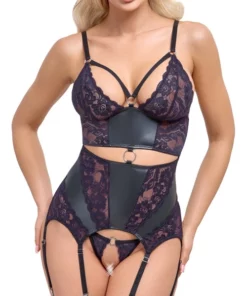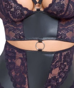 Cottelli LINGERIE Top matowy do pończoch + stringi bez szwu M czarny