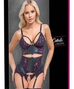 Cottelli LINGERIE Top matowy do pończoch + stringi bez szwu M czarny