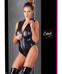 Nowoczesny model marki Cottelli – błyszczące body z długim suwakiem