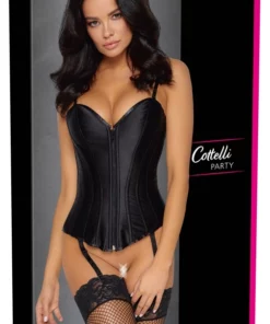 Cottelli PARTY Gorset satynowy z zamkiem i sznurowaniem – Czarny XL