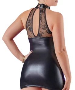 Odkryj wyjątkowy styl i elegancję dzięki tej krotkiej sukience marki Cottelli PARTY. Ten model to połączenie nowoczesnej, matowej tkaniny typu wet look z subtelnymi, ażurowymi wstawkami z koronki, ktore zostały umieszczone przy dekolcie oraz na plecach. Efektowny kontrast materiałow nadaje sukience niepowtarzalny charakter, podkreślając sylwetkę oraz zapewniając komfort noszenia.