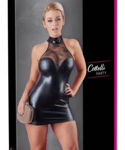 Odkryj wyjątkowy styl i elegancję dzięki tej krotkiej sukience marki Cottelli PARTY. Ten model to połączenie nowoczesnej, matowej tkaniny typu wet look z subtelnymi, ażurowymi wstawkami z koronki, ktore zostały umieszczone przy dekolcie oraz na plecach. Efektowny kontrast materiałow nadaje sukience niepowtarzalny charakter, podkreślając sylwetkę oraz zapewniając komfort noszenia.