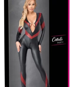 Cottelli PARTY Kombinezon Czarny Matowy z Czerwonymi Akcentami – Rozmiar M