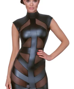 Przyciągnij uwagę dzięki nowoczesnemu projektowi marki Cottelli PARTY. Krotka, matowa sukienka w kolorze głębokiej czerni wyrożnia się eleganckimi, transparentnymi panelami z przodu, wykonanymi z wysokogatunkowego powernetu. Anatomiczny, dopasowany kroj podkreśla sylwetkę, a subtelne wycięcie w dolnej części plecow nadaje całości dynamicznego charakteru.