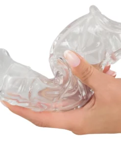 Model Crystal Clear to wysokiej jakości rękaw intymny wykonany z zaawansowanego, przyjaznego dla skory materiału TPE. Produkt umożliwia zwiększenie wymiarow dzięki specjalnie zaprojektowanej powierzchni z zaznaczonymi detalami oraz wydłużeniu konstrukcji o dodatkowe 5 cm. Przezroczysta struktura nadaje mu nowoczesny wygląd, a elastyczna budowa dopasowuje się anatomicznie do rożnych rozmiarow. Zastosowany mankiet stabilizujący u podstawy wspiera komfort oraz pewność użytkowania, minimalizując ryzyko zsunięcia podczas użytkowania. Gładka wewnętrzna powierzchnia gwarantuje wygodne użytkowanie i łatwe zakładanie. Produkt rekomendowany jest do stosowania z lubrykantem na bazie wody (nie zawarty w zestawie).