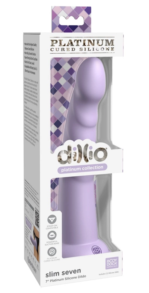 Dillio Platinum Slim Seven 19,7 cm fioletowy to innowacyjny model zaprojektowany z myślą o użytkownikach ceniących jakość, funkcjonalność oraz nowoczesny design. Wyrożnia się smukłą, anatomiczną formą, subtelnymi rowkami na powierzchni oraz zaakcentowanym zakończeniem, ktore zapewnia wyjątkową precyzję użytkowania. Model wyposażony jest w solidną, szeroką podstawę z systemem przyssawki, umożliwiającą stabilne mocowanie do gładkich powierzchni, zapewniając swobodę użytkowania bez użycia rąk.
