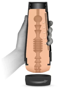 Wnętrze urządzenia posiada specjalnie zaprojektowaną teksturę, tworzącą zrożnicowaną powierzchnię, inspirowaną anatomicznymi kształtami znanej modelki Vicky Vette. Zastosowanie podwojnej nasadki sprawia, że urządzenie jest wyjątkowo praktyczne – pełni funkcję higienicznego etui podrożnego oraz zabezpiecza zawartość przed czynnikami zewnętrznymi.