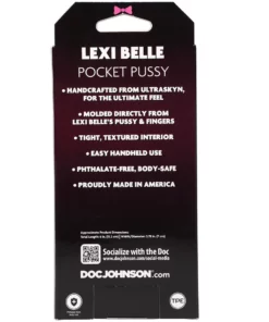 Poznaj zaawansowany model intymny marki Doc Johnson z serii Lexi Belle, wykonany z wysokiej jakości materiału ULTRASKYN. Ten anatomiczny projekt został stworzony z dbałością o detale, zapewniając realistyczną powierzchnię oraz wyjątkową wytrzymałość. Model wyposażony jest w charakterystyczne odwzorowanie dłoni, ktore podnosi walory użytkowe i estetyczne produktu. Produkt skierowany jest do osob poszukujących wysokiej klasy gadżetow intymnych wykonanych z bezpiecznych, nowoczesnych komponentow.