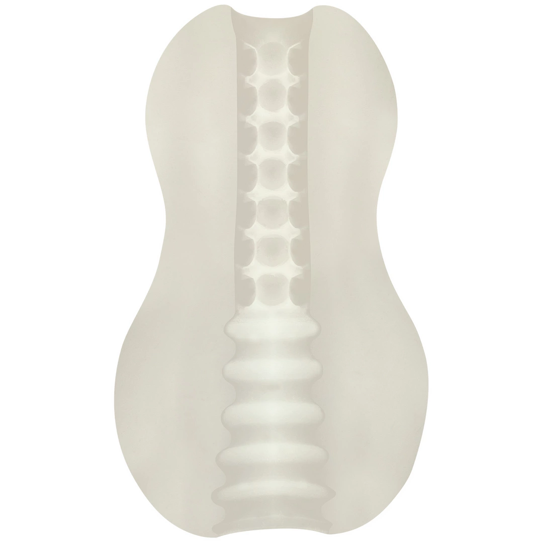 - Drugi kanał, o większej średnicy, został zaprojektowany z mocno żebrowaną teksturą, co pozwala na zrożnicowane odczucia podczas użytkowania.