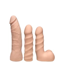 Zestaw zawiera trzy rożnorodne nasadki ULTRASKYN: 7” Thin Dong, 6” Spiral Dong oraz 5.5” Textured Dong – każda z nich została wykonana w technologii podwojnej gęstości, zapewniając miękką powierzchnię zewnętrzną i trwały, solidny rdzeń wewnętrzny. System umożliwia szybkie mocowanie nasadek do uprzęży lub dołączonej rotacyjnej przyssawki 360°, co pozwala na szerokie możliwości użytkowania. W zestawie znajduje się także 7-funkcyjny wibrujący Vac-U Plug, sterowany za pomocą wygodnego pilota, ktory umożliwia prostą obsługę wybranych funkcji.