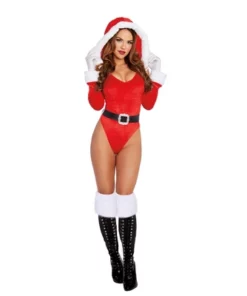 Odkryj wyjątkowy, świąteczny kostium marki Dreamgirl, stworzony z myślą o osobach pragnących wprowadzić atmosferę radości podczas świątecznych okazji. Zestaw w rozmiarze S obejmuje trzy starannie dopasowane elementy, ktore pozwolą poczuć się jak prawdziwy pomocnik Mikołaja. Kompletny kostium zawiera body z regulowanym kapturem, wykończonym delikatnym, sztucznym futerkiem dla podkreślenia zimowego stylu, praktyczny pas oraz nakładki na buty idealnie dopełniające całościowy wygląd.