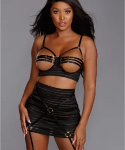 Dreamgirl Zestaw bielizny z otwartą miseczką i pończochami do paska, rozmiar M