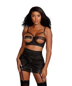 Dreamgirl Zestaw bielizny z otwartą miseczką i pończochami do paska, rozmiar M