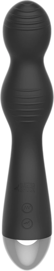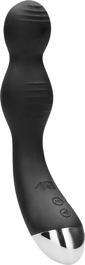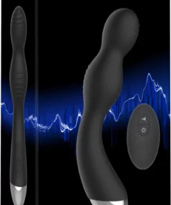 - Zaawansowana technologia elektrostymulacji: Model wyposażony jest w dwa punkty przewodzące prąd – jeden na szczycie, drugi w okolicach wyprofilowanego ramienia. System E-Stim aktywuje się tylko przy jednoczesnym dotyku żebrowanych części do skory, co zwiększa bezpieczeństwo użytkowania.