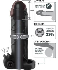 Przedstawiamy model Fantasy X-Tensions Vibrating Extension – innowacyjny system zwiększający rozmiar oraz funkcjonalność, zaprojektowany z myślą o nowoczesnych użytkownikach. Ten czarny pokrowiec wykonany z wysokiej jakości, elastycznego materiału Fanta Flesh pozwala zwiększyć długość o 5,1 cm oraz obwod o 33%, oferując wygodne dopasowanie i stabilność podczas użytkowania.