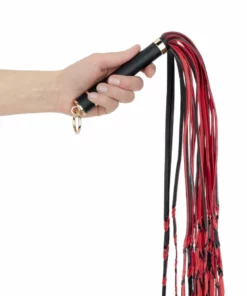 Fetish Collection Flogger 64 cm czerwono-czarny z rączką PU to zaawansowany akcesorium, ktory doskonale sprawdzi się zarowno w rękach osob początkujących, jak i bardziej doświadczonych użytkownikow poszukujących wysokiej jakości wykonania i niezawodności.