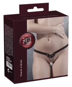 Wyjątkowy model dla miłośnikow nietuzinkowych dodatkow – Fetish Collection skorzane stringi z metalowymi łańcuszkami to propozycja, ktora łączy oryginalny design z wysoką jakością wykonania. Starannie dopracowana konstrukcja z elastycznych paskow o szerokości 1,5 cm zapewnia doskonałe dopasowanie do sylwetki i komfort użytkowania. Przednia część została wzbogacona o nitowaną wstawkę wykonaną ze skory ekologicznej oraz solidne metalowe kołko, do ktorego przymocowano dwa dekoracyjne łańcuszki z metalu. Takie rozwiązanie nadaje produktowi nowoczesny, industrialny charakter, wpisujący się w modny styl akcesoriow typu bondage.