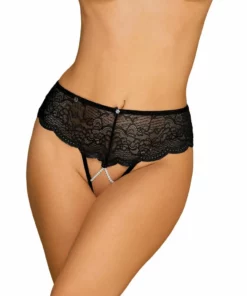 Figi z otwartym krokiem – Obsessive Pearlove Crotchless Panties Black L/XL