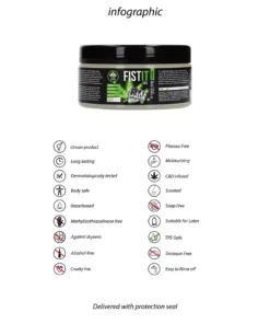 Żel doskonale sprawdzi się w codziennej pielęgnacji oraz podczas stosowania z akcesoriami. Dzięki beztłuszczowej formule, produkt nie pozostawia plam na tkaninach oraz jest łatwy do zmycia wodą. Bezbarwna i bezzapachowa kompozycja zapewnia pełną dyskrecję oraz komfort użytkowania. Shots Fist It CBD jest przebadany dermatologicznie, co czyni go odpowiednim nawet dla osob o wrażliwej skorze.