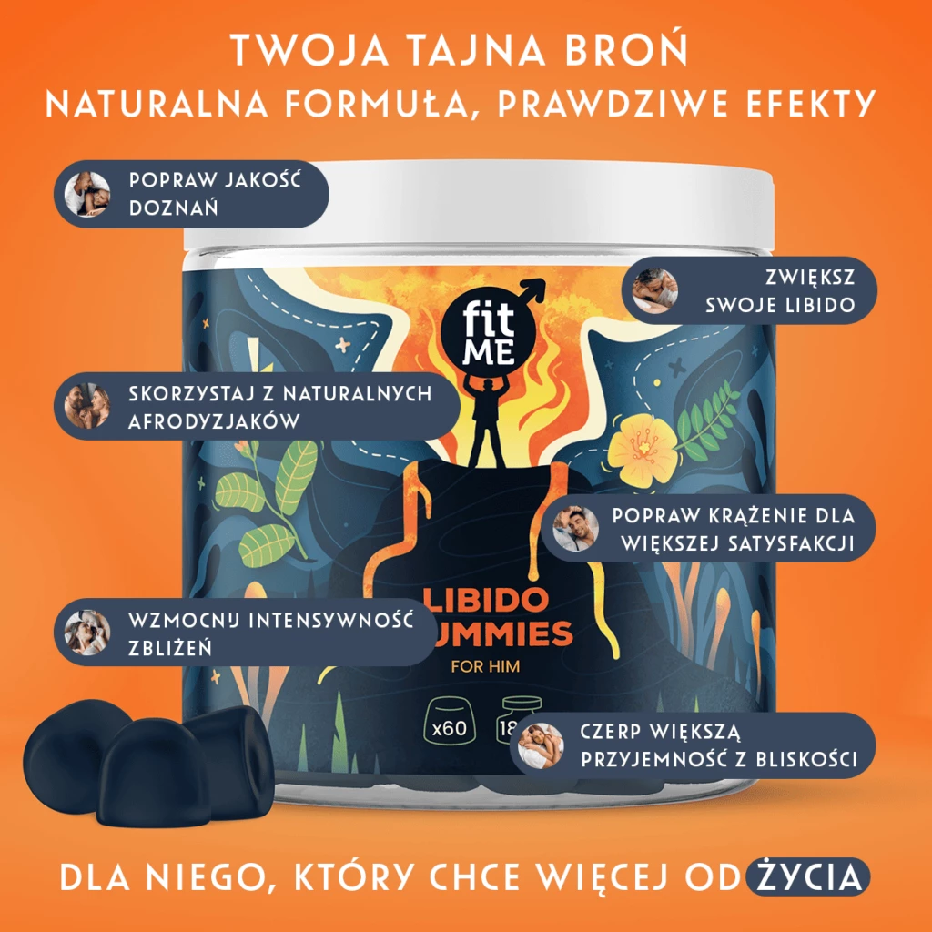 Odkryj nowoczesne wsparcie energii i witalności każdego dnia. FitMe Libido Gummies for Him to starannie opracowany suplement diety w formie wygodnych żelek, przeznaczony dla mężczyzn dbających o rownowagę fizyczną i ogolną kondycję organizmu.
