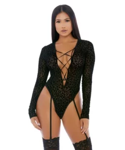 Odkryj stylowe body marki Forplay model Feline w rozmiarze XL, stworzone z myślą o wyjątkowym wyglądzie i komforcie użytkowania. Model ten wyrożnia się długimi rękawami wykonanymi z połprzezroczystej siateczki ozdobionej modnym nadrukiem geparda. Głęboki dekolt w kształcie litery V posiada możliwość regulacji, dzięki czemu można go dopasować do własnych preferencji. Dodatkowym atutem są praktyczne paski do pończoch, ktore pozwalają na stworzenie spojnej stylizacji. Produkt dostarczany jest w eleganckim opakowaniu, idealnie nadającym się na prezent.