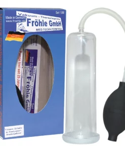 Urządzenie umożliwia indywidualną regulację ciśnienia dzięki praktycznemu zaworowi, a duża, wygodna komora o długości 20 cm i średnicy 5,5 cm pozwala na komfortowe dopasowanie. W zestawie znajdują się: mankiet węża oraz mankiet zatyczkowy, ktore dodatkowo zwiększają wygodę użytkowania i bezpieczeństwo. Model może wspołpracować z akcesoriami FROHLE, co pozwala na rozbudowę systemu według własnych potrzeb.