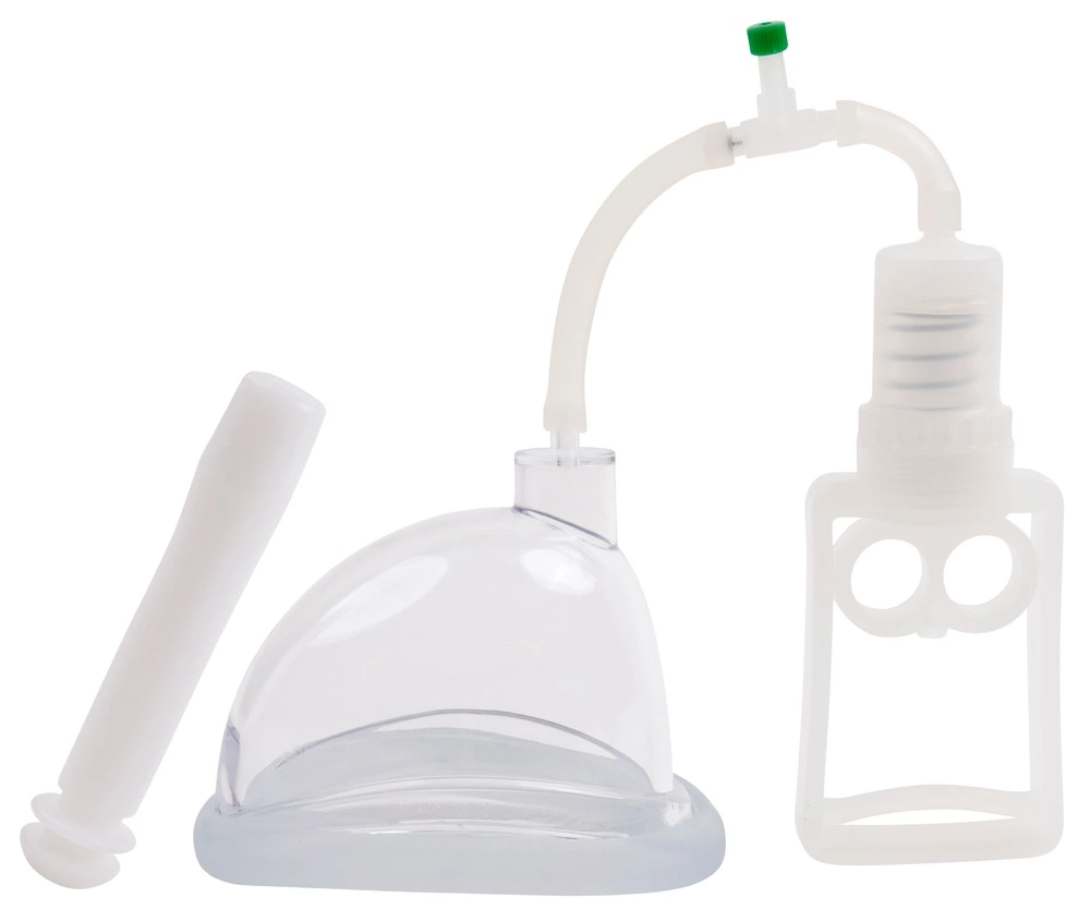 Głowna część zestawu to krystalicznie przejrzysta nakładka anatomiczna, ktora została wyposażona w ergonomiczną uszczelkę dopasowującą się do kształtu ciała. Dzięki zastosowaniu pompy tłokowej z elastycznym przewodem oraz zaworem, możliwe jest wytworzenie podciśnienia do 600 mbar, co pozwala na precyzyjne dostosowanie intensywności działania do indywidualnych potrzeb.
