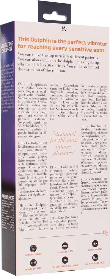 GC by Shots Dolphin cechuje się aż 36 trybami pracy, dzięki czemu możesz swobodnie regulować zarowno intensywność, jak i kierunek rotacji. Model wykonany z wysokiej jakości, bezpiecznego materiału, gwarantuje komfort użytkowania i łatwość czyszczenia.