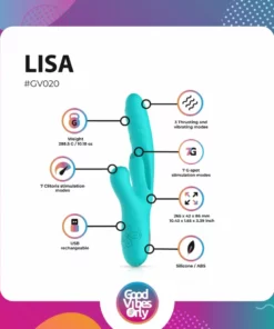 Good Vibes Only Lisa to innowacyjny masażer intymny, ktory łączy nowoczesną technologię pulsacyjną z precyzyjnym systemem stymulacji punktu G. Model ten wyposażony jest w zaawansowany mechanizm ruchu posuwistego, ktory pozwala na personalizację trybow pracy, zapewniając dopasowanie do indywidualnych preferencji.