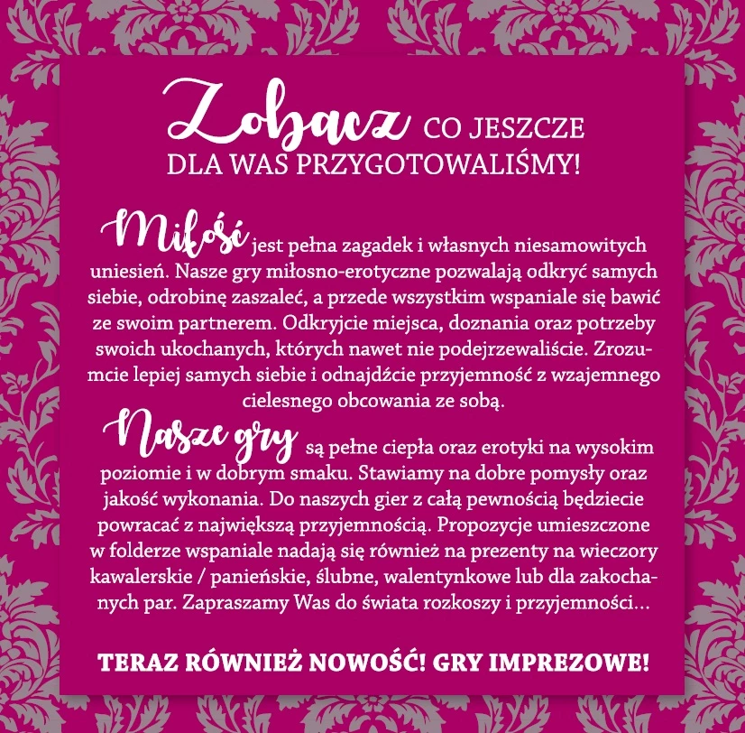 Wybierz Grajmy Razem Skosztuj Mnie i podaruj sobie oraz partnerowi okazję do wspolnego odkrywania siebie na nowo w atmosferze bliskości i dobrej zabawy!