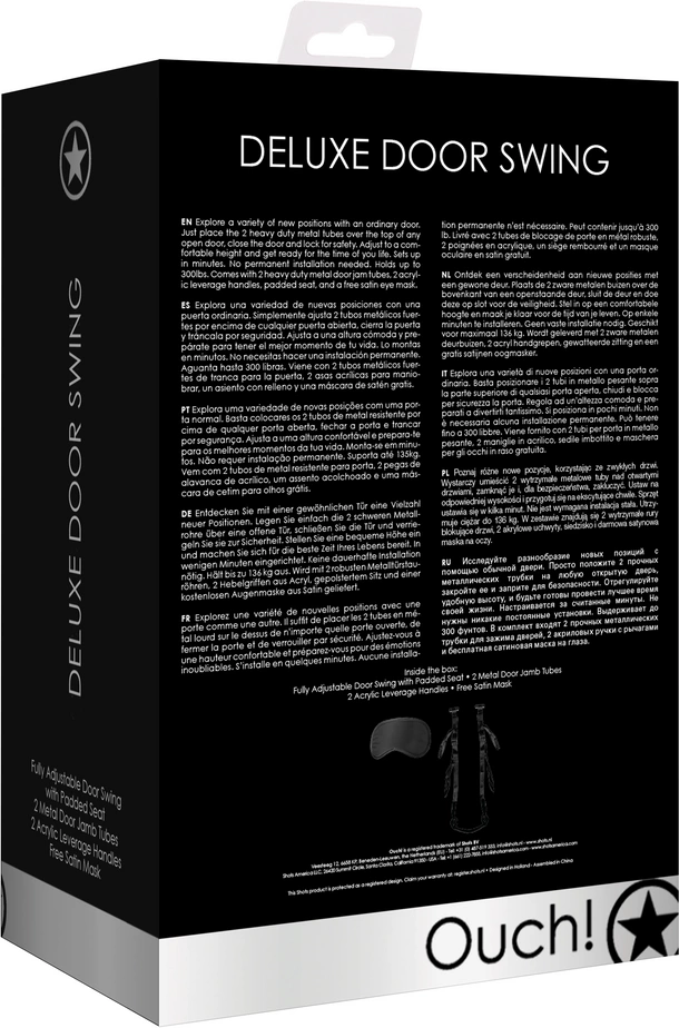 Poznaj nowoczesny system do pozycji Ouch! by Shots Deluxe, zaprojektowany z myślą o wygodzie, bezpieczeństwie oraz łatwości obsługi. Model ten umożliwia szybkie i stabilne zamocowanie wytrzymałej konstrukcji na niemal każdych standardowych drzwiach – bez konieczności trwałego montażu czy użycia narzędzi.