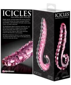 Pipedream Icicles Model 24 to ekskluzywny, ręcznie formowany masażer wykonany z wysokiej jakości szkła borokrzemowego. Nowoczesny, zakrzywiony kształt sprawia, że doskonale nadaje się do relaksujących masaży ciała. Model ten można schłodzić lub podgrzać, co pozwala na wykorzystanie właściwości termicznych szkła i dopasowanie temperatury do indywidualnych preferencji użytkownika. Produkt cechuje się wysoką trwałością oraz łatwością w utrzymaniu czystości – powierzchnia nieporowata pozwala na szybkie i skuteczne czyszczenie.