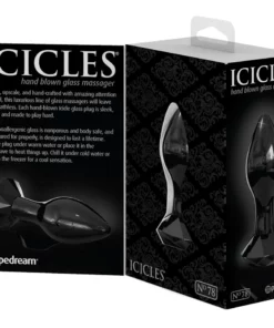 Poznaj wyjątkowy model od renomowanej marki Icicles – szklany korek o stożkowym kształcie, ktory zachwyca eleganckim designem i funkcjonalnością. Wykonany z wysokiej jakości dmuchanego szkła, produkt wyrożnia się czarną, lśniącą powierzchnią oraz subtelną ozdobą w postaci imitacji kamienia szlachetnego, nadając całości unikalnego charakteru. Jego anatomiczny kształt gwarantuje komfort użytkowania, a gładka tekstura ułatwia zastosowanie i utrzymanie higieny.