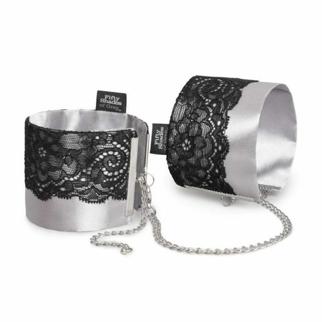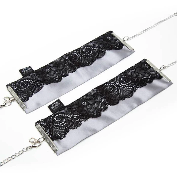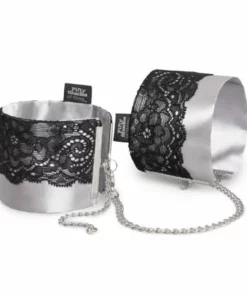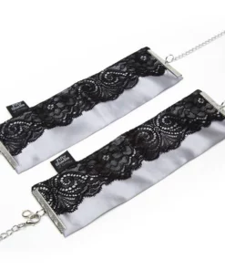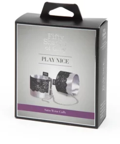 Fifty Shades of Grey Play Nice – eleganckie mankiety na nadgarstki inspirowane bestsellerową serią, stworzone z myślą o stylowym i komfortowym użytkowaniu. Wykonane z wyjątkowo miękkiej, satynowej tkaniny oraz ozdobione delikatną czarną koronką, stanowią połączenie wyrafinowanego wzornictwa i funkcjonalności. Dzięki solidnym zapięciom na karabińczyki zapewniają łatwość użytkowania oraz bezpieczeństwo. Ich szeroka regulacja w zakresie od 21,6 cm do 31,8 cm umożliwia idealne dopasowanie do rożnych obwodow nadgarstkow.