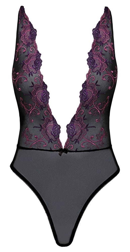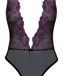 Poznaj model body marki Kissable, zaprojektowany z myślą o osobach ceniących wyjątkową estetykę oraz wygodę użytkowania. Wykonane z miękkiego, czarnego materiału typu powernet, ozdobione precyzyjnym haftem kwiatowym w odcieniach fioletu i rożu, body prezentuje się niezwykle elegancko. Model posiada regulowane, krzyżujące się na plecach ramiączka, co pozwala na idealne dopasowanie do sylwetki.