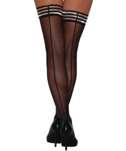 Kixies Lois C – Czarne pończochy z tylnym szwem i silikonowym paskiem