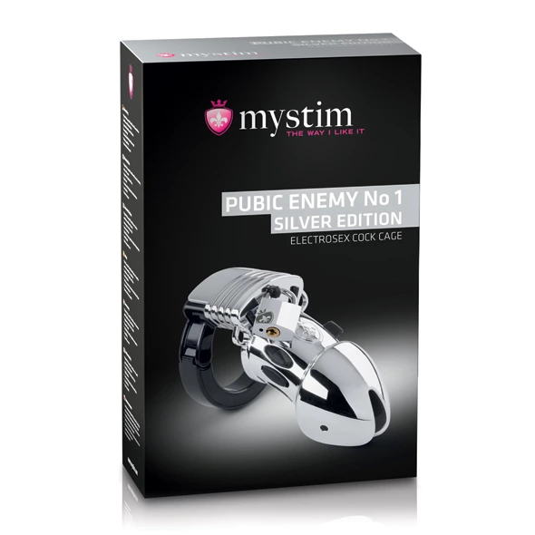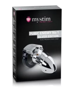 Mystim Pubic Enemy No 1 Silver Edition – anatomiczna klatka intymna z systemem elektrostymulacji