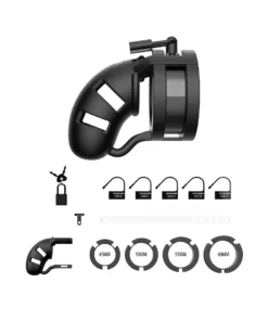 Zaawansowany system regulowanych pierścieni pozwala na precyzyjne dopasowanie urządzenia, a specjalnie zaprojektowana kulka Ballsplitter wprowadza dodatkowy element zabezpieczenia. Otwory wentylacyjne gwarantują odpowiednią cyrkulację powietrza oraz umożliwiają wygodne korzystanie z toalety. Model wyposażony jest w solidny metalowy zamek oraz zestaw plastikowych zabezpieczeń, ktore sprawdzą się podczas sytuacji wymagających dyskrecji, np. podczas kontroli bezpieczeństwa.
