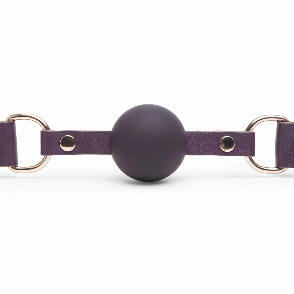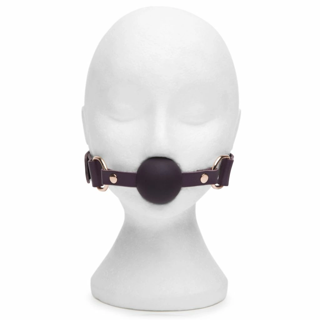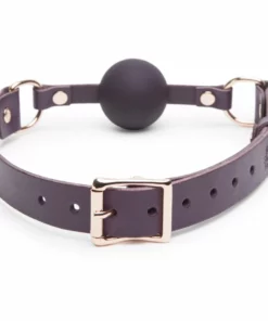 Model wyposażony jest w kulkę wykonaną z gładkiego silikonu, ktora zapewnia komfort użytkowania oraz łatwość w utrzymaniu czystości. Skorzane, eleganckie paski umożliwiają szeroki zakres regulacji, co pozwala na indywidualne dopasowanie do użytkownika. Całość wykończona została w efektownym odcieniu fioletu z detalami w kolorze rożowego złota, ktore nadają wyrafinowanego charakteru.