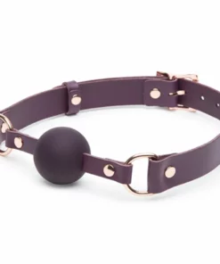 Model wyposażony jest w kulkę wykonaną z gładkiego silikonu, ktora zapewnia komfort użytkowania oraz łatwość w utrzymaniu czystości. Skorzane, eleganckie paski umożliwiają szeroki zakres regulacji, co pozwala na indywidualne dopasowanie do użytkownika. Całość wykończona została w efektownym odcieniu fioletu z detalami w kolorze rożowego złota, ktore nadają wyrafinowanego charakteru.