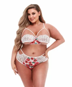 Baci White Floral & Lace Set Queen Size to wyjątkowy komplet bielizny damskiej, zaprojektowany z myślą o osobach ceniących elegancję i komfort. Model ten powstał z połączenia delikatnej, białej koronki oraz kwiatowych wzorow, co nadaje mu subtelny i stylowy wygląd. Dwuczęściowy zestaw składa się z biustonosza z połotwartymi miseczkami, ozdobionego dekoracyjnymi paseczkami oraz wysokich majtek z koronkowymi detalami i paskami, ktore doskonale podkreślają sylwetkę.