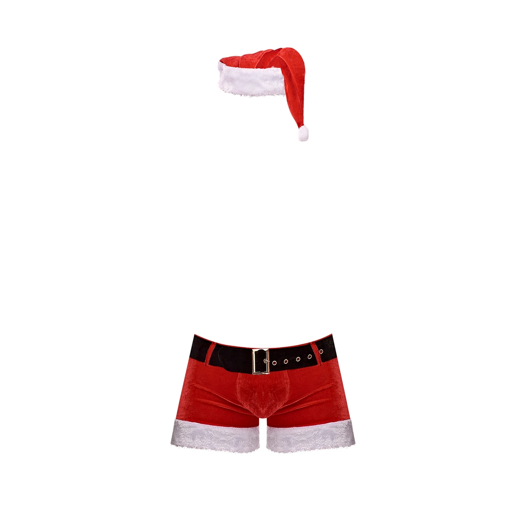 Wprowadź świąteczną atmosferę dzięki modelowi Male Power w rozmiarze L/XL – to komplet inspirowany klasycznym strojem Mikołaja, zaprojektowany z dbałością o detale oraz komfort użytkowania. Zestaw obejmuje spodenki z charakterystycznym paskiem oraz wykończeniem z miękkiego pluszu na nogawkach, a także tradycyjną czapkę Mikołaja, ktora dopełnia całość stylizacji.