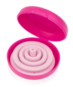 Intimina Lily Cup Compact A to innowacyjny, składany kubeczek menstruacyjny zaprojektowany z myślą o maksymalnej wygodzie oraz dyskrecji użytkowania. Model ten wykonany został z wysokiej jakości silikonu medycznego, ktory gwarantuje bezpieczeństwo oraz trwałość przez wiele cykli użytkowania. Dzięki możliwości złożenia na płasko i umieszczenia w dołączonym, kompaktowym etui, kubeczek z łatwością zmieści się w torebce lub kieszeni, stając się nieodłącznym elementem codziennej higieny – zarowno w domu, jak i w podroży.