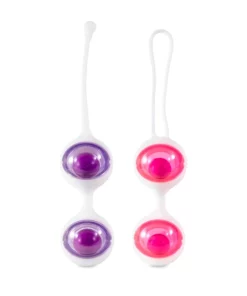 W skład zestawu wchodzą cztery kulki w dwoch wariantach wagowych: dwie rożowe (35 g każda) oraz dwie fioletowe (50 g każda). Kulki można swobodnie umieszczać w dołączonych uchwytach, co pozwala na 5 rożnych kombinacji wagowych, dostosowanych do poziomu zaawansowania i indywidualnych potrzeb użytkowniczki.