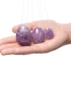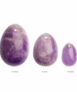 - Zestaw trzech jajeczek z ametystu: rozmiar S (ok. 3 x 2,5 cm), M (ok. 4 x 3 cm), L (ok. 5 x 3,5 cm)