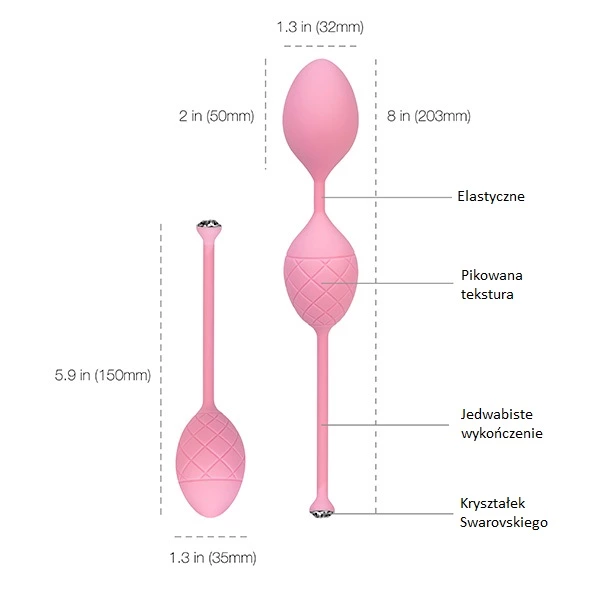 - Długość: 150 mm (pojedyncza kulka), 203 mm (podwojne kulki)