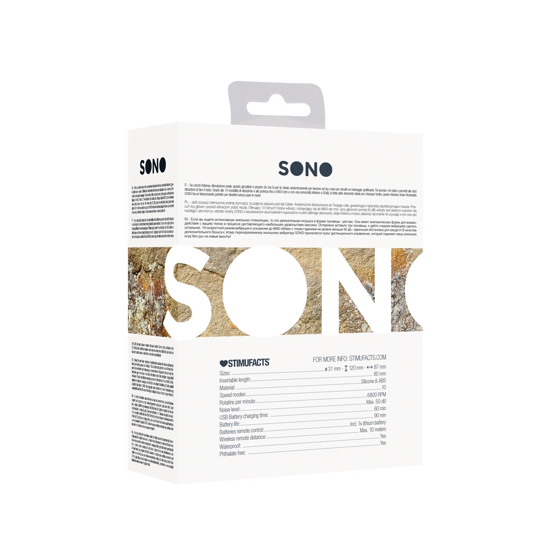 Nowoczesny produkt marki SONO, model No.78, to zaawansowane urządzenie przeznaczone do masażu stref intymnych. Został precyzyjnie wykonany z wysokiej jakości silikonu klasy medycznej, co gwarantuje nie tylko komfort użytkowania, ale i bezpieczeństwo. Jego anatomiczny, bulwiasty kształt z trzema wyprofilowanymi segmentami dopasowuje się do budowy ciała, zapewniając skuteczną i wszechstronną stymulację.