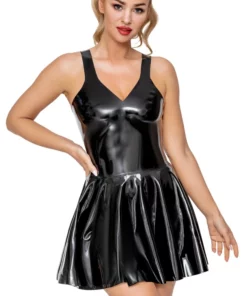 Lateksowa powierzchnia o grubości 0,35 mm gwarantuje trwałość oraz elegancki połysk, a anatomiczny kroj zapewnia komfort użytkowania. Sukienka wykonana została z elastycznego materiału, ktory dopasowuje się do kształtow, zapewniając jednocześnie odpowiednią wytrzymałość. Produkt stworzony z naturalnego kauczuku lateksowego – należy pamiętać o możliwości wystąpienia alergii lateksowej.